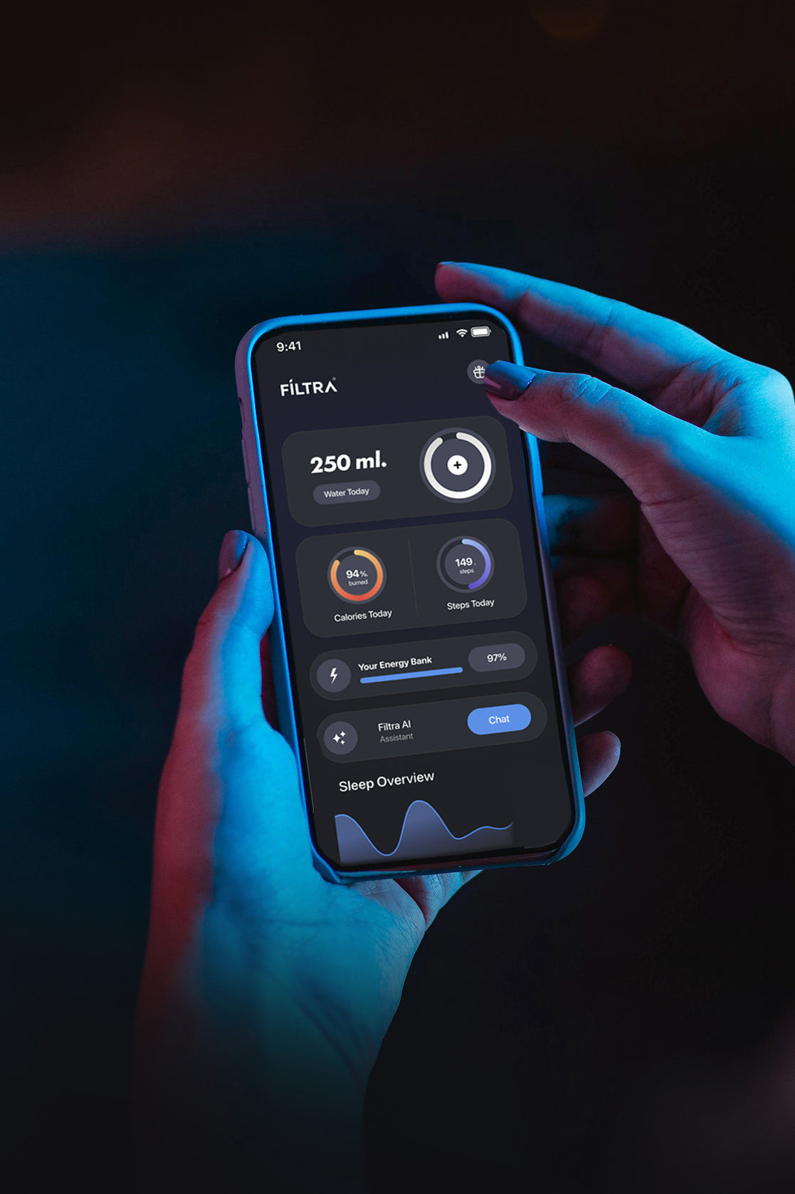 Track your progress in our App. Now you can count your calories, track your hydration, and even track your sleep, all in one single app. Visit App store or Google Play to download it.